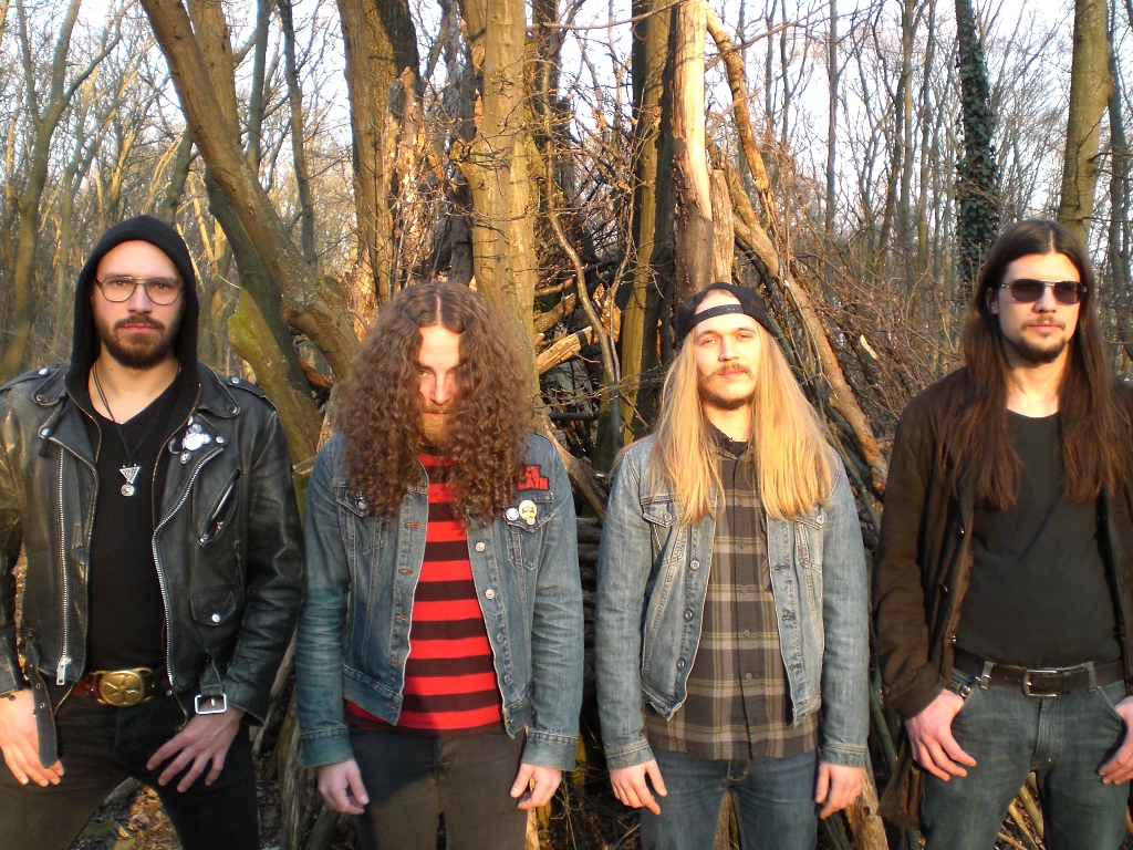 Alex: I met Arik at a Danava/Saviours Show back in 2012 in Austria. I got there with my friends and he was already hanging out outside. I went to the bar for a beer and he was standing right next to me. They were playing Sir Lord Baltimore at the venue and we both sang along to the lyrics. We started talking and he told me he was forming a band. It was obvious I had to join. I originally wanted to play guitar but there were already two guitarist (him and Shardik) so I thought I am just gonna start banging the drums. It was love at first sight. We met our bass player Georg over the internet. One time I showed up at the rehearsal and there was this mean looking guy playing bass like hell. The love story continued…