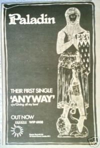 Keith Webb and Peter Solley had just broken up with Terry Reid after supporting the Stones on tour in America. They wanted to form a more progressive band. They approached me in The Speakeasy club in London and asked me to go up to their manor house in the Gloucestershire countryside. We rehearsed there for several months as we tried out guitarists and singers. It was one of the best and most interesting times of my life. We signed with Bronze records and put out “Paladin”. The band toured constantly and became a draw on the university and club circuit. Eventually we released “Charge” which was engineered by Geoff Emerick of Sgt Pepper fame.