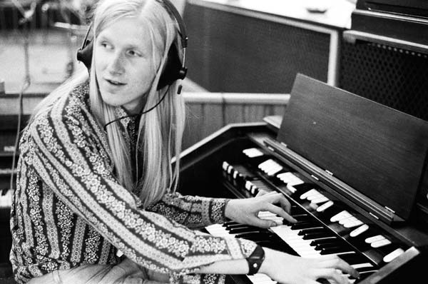 I hope I remember correctly. Pearl Drums, Congas and Timbales, Fender Stratocaster, Gibson SG Standard, Vox Organ Guitar, Fender Jazz Bass, Gibson EB2, all with various effect pedals, Dynachord Echo’s, 4 EMS Sythi A’s, Revox A77 for tape delay, Hammond B3, Bavarian Zither and contact mikes on found objects.