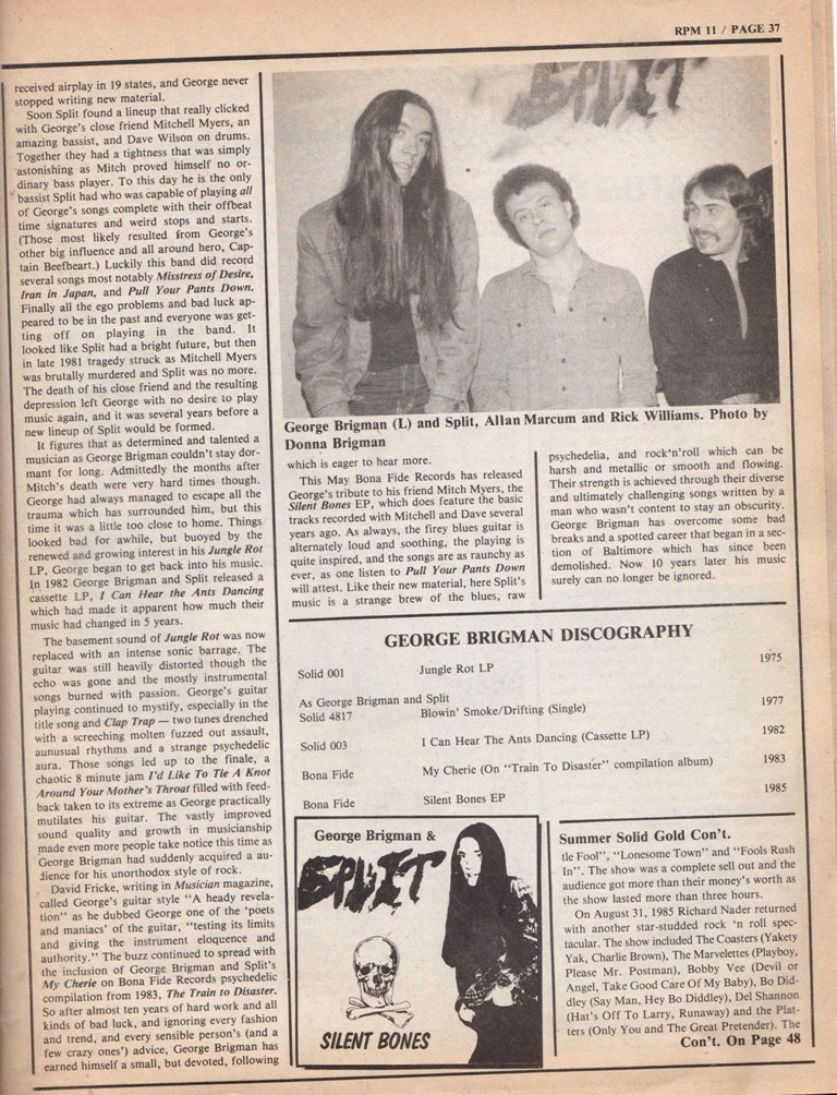 I started my own band, the George Brigman Band, then changed to Hogwash, then to Split.