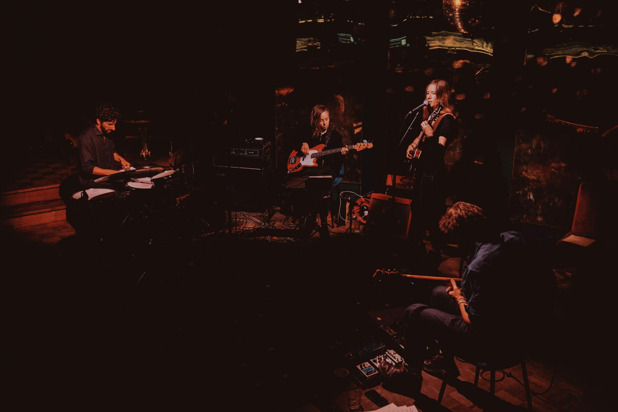 The lyrics and shape of the songs were pretty much there once the band became involved, but I was excited to move into the unknown of how each musician would bring their own style and sound to the project. Through the collaborative process, I encountered excitement, insecurity, attachment/unattachment, and boldness in terms of my relationship to musical choices. Also, my processing of the past became entwined with the realisation that certain songs or lyrics had predicted events that have since unfolded, so there is a strange blending of past, present, and future that exists when I listen to the songs.
