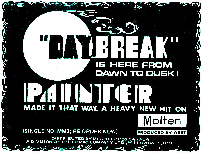 A frequent client of Park Lane during 1971 and spring/summer of 1972 was the Calgary-based band Painter. Led by guitarist Danny Lowe, and including vocalist Dorn Beattie, bassist Wayne Morrice and drummers Terry Bare, and then Bob Ego, they were creating and assembling a series of demo recordings that would eventually get them signed to a major American label. Recalls Dan Lowe: